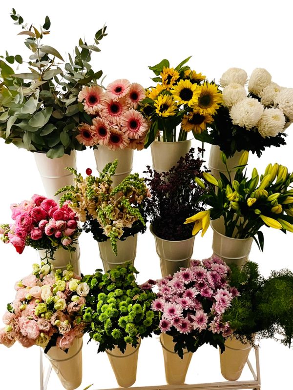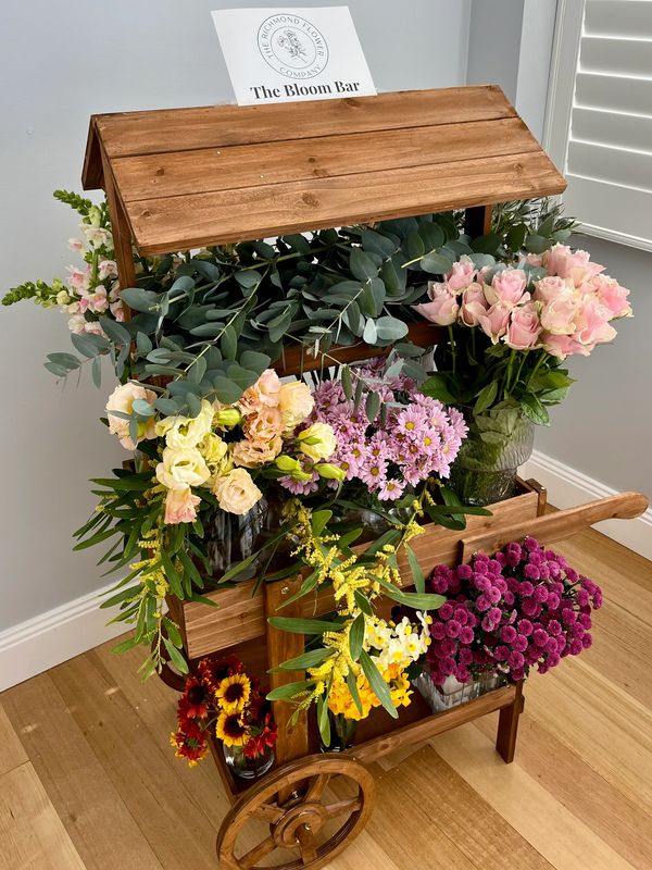 Showcase these beautiful pre-made bouquets with our elegant wooden Bloom Cart.