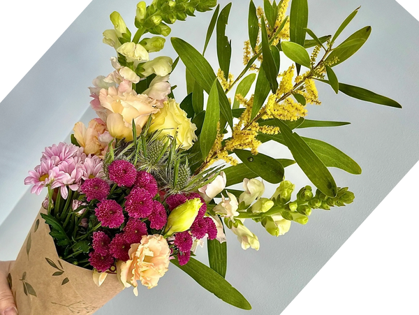 A curated selection of fresh, in-season blooms (mix of statement flowers, fillers, and greenery)